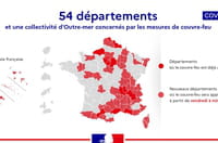 Une liste à laquelle il faut désormais ajouter l'Ain, les Alpes-Maritimes, l'Ardèche, les Ardennes, l'Ariège, l'Aube, l'Aveyron, le Bas-Rhin, le Calvados, la Corse du Sud, la Côte d'Or, la Drôme, le Gard, la Haute-Corse, la Haute-Loire, la Haute-Savoie, la Haute-Vienne, les Hautes-Alpes, les Hautes-Pyrénées, l'Ille-et-Vilaine, l'Indre-et-Loire, le Jura, le Loiret, la Lozère, le Maine-et-Loire, la Marne, la Meurthe-et-Moselle, l'Oise, le Pas-de-Calais, le Puy-de-Dôme, les Pyrénées-Atlantiques, les Pyrénées-Orientales, la Saône-et-Loire, la Savoie, le Tarn, le Tarn-et-Garonne, le Var et le Vaucluse. A noter que la Polynésie française est également concernée par le couvre-feu.